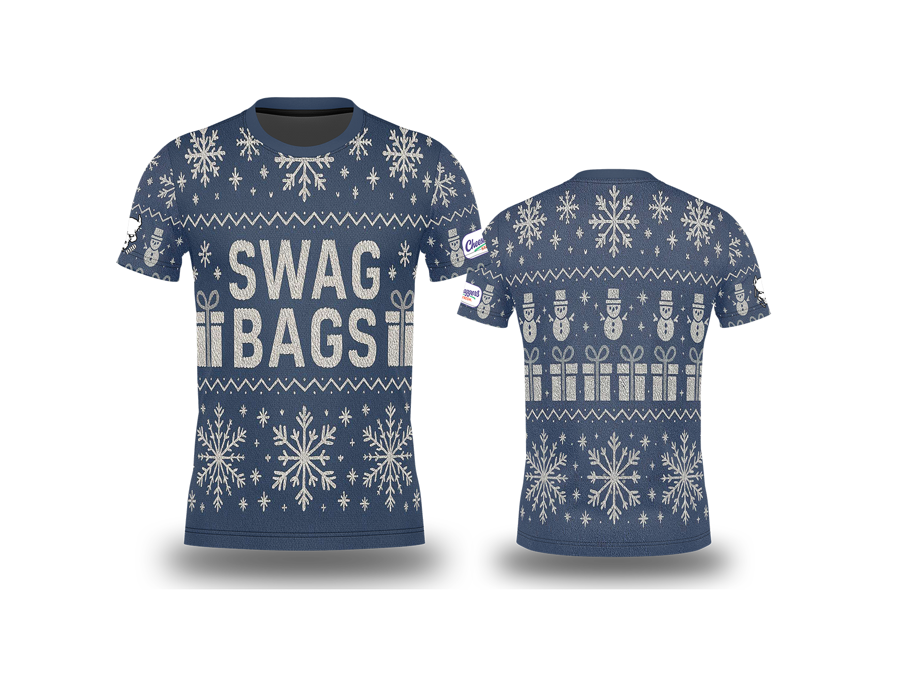 # SWAG BAGS - "UGLY CHRISTMAS SWEATER" JERSEY Rock the holidays with zero apologies. This limited-edition jersey flips the script on festive fashion—bold, irreverent, and unapologetically fun.